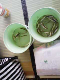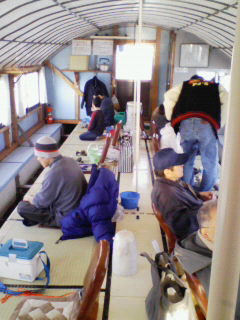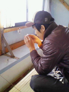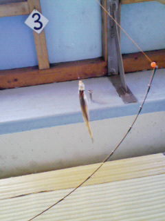 ワカサギ釣りと言うと、 氷に穴あけて糸を垂らして・・・ってのを想像するかもしれんけど、今回言ったのは野尻湖での屋形船バージョン ![]() 会社の人と行くことに、今このワカサギ釣りが大人気らしく完全予約制 ![]() 「土日はいっぱい。平日なら空いてるんですけどねぇ~。」だそうな。そりゃ無理だ ![]() が、5件目くらいで何とか予約 ![]() 予約できたのはいいが、二人ともワカサギ釣り経験無し ![]() 針の付け方も、釣り方も何も分からん ![]() まぁ何とかなるやろ・・・ ![]() 当日。運良く快晴 ![]() 7時半出航とゆーことで7時には野尻湖着 ![]() 朝もやの野尻湖 ![]() 早速船頭のおっちゃんに色々教わる ![]() 竿、バケツ、重りなど必要アイテムを借りていざ乗船 ![]() 左 釣りまくったんでぇ~ ![]() 右 中はこんな感じ、18人が背中合わせで釣る ![]() 教わった通りに針をつけて重りをつけてエサをつける。 エサはウジムシ ![]() 左 グロ注意。白いのと赤く染めてあるのと2種類 右 ウニウニ動くからなかなか難しい 何とかうまくできて準備完了。 船が止まってスタート ![]() ・ ・ ・ 開始20分。 アタリも来ず ![]() 周りの人はボチボチ釣り上げている様子。 おっちゃんに教わった事をもっかいここでシミュレーション ![]() ワカサギがエサをつっつく ![]() 竿の先が動く(アタリが来る) ![]() すぐに竿を上げる(針を刺す) ![]() 焦らず一定速度でリールを巻き上げる ![]() 水面からワカサギが姿を現す ![]() クールにガッツポーズ ![]() テンプラ 完璧 ![]() 竿の先に意識を向ける ・ ・ ・ ・ ・ !? ちょっと動いたかな・・・ 「今のがアタリだよ」と船頭さん。 ![]() あんだけしか動かんがけ![]() ちいさいワカサギやとちょっとしか動かんらしい ![]() 動いた気がしたらとりあえず上げてみる作戦に変更。 何度か上げたが全てハズレ ![]() 初ゲットは開始から40分くらいやったかな。 巻き上げて魚が見えたときはテンションあがった ![]() 左 記念すべき一匹目 ![]() 右 小っちぇえ・・・ やってくうちに段々と竿先の動き具合が分かってくる ![]() そうなればじゃんじゃん釣れる ![]() ![]() ![]() ![]() ![]() 開始3時間ほどで20匹弱は釣ったかな ![]() 昼過ぎ辺りからパッタリ。 船内のみんなが連れてない模様。 ワカサギも回遊しとるらしく今は周りにおらんみたい。 1時間で1~2匹しか釣れん。ポカポカ陽気の誘われてしばしの仮眠 ![]() 終了1時間ほど前になって再び釣れ始める ![]() 時間ギリギリまで粘る。 本日の釣果は27匹(「ちょうか」って言うらしい) 右のバケツがNo.14、左は一緒に行った人のバケツ。ダブルスコア以上で圧勝 ![]() 持って帰ってテンプラにしよう。。。 天婦羅?・・・やったことねぇ ![]() ネットで下調べ ![]() ヌメリを取って、水気を取って、テンプラ粉につけて、準備OK。 火にかけた油にぶち込む ![]() ジューっていい音 ![]() ワカサギ丼完成 ![]() さっそく頂く。 うめぇ。 ![]() ![]() ![]() 野尻湖では11月~4月までやっとるらしい。今年はもう無理やな。 また来年行こ。そんときゃもっと釣ったるでぇ~