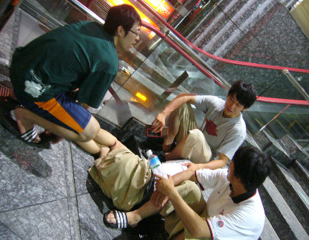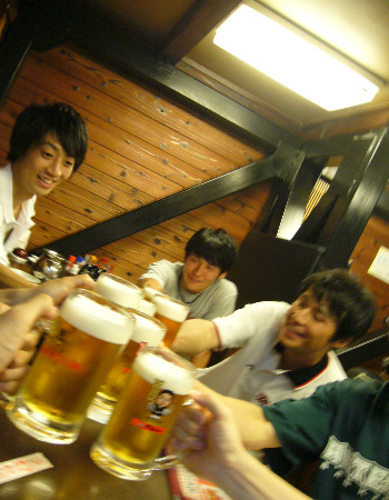 ホテルへ向かう途中、あまりの疲労No.19が吐いとった。。。 ホテルに着く頃には既に21時を回っとる ![]() チェックインして、荷物だけ置いて飲みにでる ![]() 名古屋と言えば、 手羽先 ![]() 手羽先と言えば、 世界の山ちゃん ![]() http://www.yamachan.co.jp/index.html席に着いてメニューも見ずにビール と、手羽先10人前を注文 ![]() キタ━(゚∀゚)━! 乾杯! この一杯がたまらん ![]() 手羽先もうめぇ。 その他、どて煮やら味噌カツやらも平らげる ![]() しばらく飲んどると、Modernクラブにおった信州大学OB(酒豪)も合流 ![]() ますます飲みが加速 ![]() 2次会でもじゃんじゃん飲んで。。。 No.18 撃沈 ![]() 名古屋の繁華街の真ん中でご就寝 ![]() 支えられないと立っとれんNo.18を抱えて勝ち名乗りを上げる酒豪+2人 ![]() 休憩中(看病中)の様子 ![]() No.12は名古屋の繁華街でもこの格好。。。 開始が遅かったこともあり楽しい名古屋の夜はあっというまに終了。 ・ ・ ・ 翌日。 昨晩 撃沈していたNo.18。 顔が真っ青 ![]() この日は午後から飯田で練習ゲーム ![]() なので昼には早いけど、ひつまぶしの有名店へ。 その途中。 No.18 リバース ![]() 片側5車線の名古屋の大動脈の傍らでリバース 。有名店に到着 ![]() が、すでに順番で45分待ち ![]() さすが人気店 ![]() 時間がないため諦めて帰路へつこうとした時 No.18 再び リバース ![]() 名古屋で有名なうなぎ店の前でリバース ![]() こりゃ、あんなにおいしかった手羽先も、どて煮も全部出したな。。。 新たな 地産地消 か。 いやぁやっぱ遠征ってすげぇ楽しい ![]() また行きてぇ。 飯田クラブの皆さん、 突然のオファーに対応して頂きありがとうございました。 m(_ _ )m PR