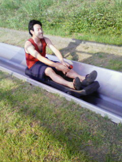 去年は飯綱高原の大座法師池でやった ![]() 今年は中野市の何とか文化センターってとこのキャンプ場 ![]() www.valley.ne.jp/~kooen/ たまたま長野に遊びに来ていたアンテOBのちんぷいも参加 ![]() 買出しして出発。 この日も超快晴 ![]() どんなトコか期待と不安が入り混じるまま向かう ![]() ![]() 到着してみると木陰あり、そよ風ありでそんなに暑くなくなかなか快適 ![]() 例年になく火起こし も順調にいってスタート![]() 外で食う肉はうめぇ~、ビールもうめぇ~。エリンギも茄子もうめぇ~ ![]() 人間がおいしさを感じるのは味覚よりも実は視覚が大きく作用しているそうな ![]() だから外で食うと何でもうまく感じるんかな ![]() いつもなら2、3缶で即撃沈するNo.4も好調で4缶空けとった ![]() 腹も一杯になったとこでサマーボブスレーに乗る 頂上の様子。ここから全長500mのコースを一気に滑り降りる ![]() なかなかスピード出ておもろかった ![]() 左 4缶空けてご機嫌のNo.4 右 ビビリながらも何とか完走、敏腕マネ 左 怖いもの知らずのNo.5 右 肉をたらふく食ったNo.14(No.4撮影&提供) 続いてみんなでアスレチックに挑戦 ![]() 汗だくになりながらも余裕で全面クリア ![]() 個人的には今年2回目のBBQ ![]() いやぁ~やっぱ昼間っから飲むビールはうめぇもんだ ![]() PR この記事にコメントする