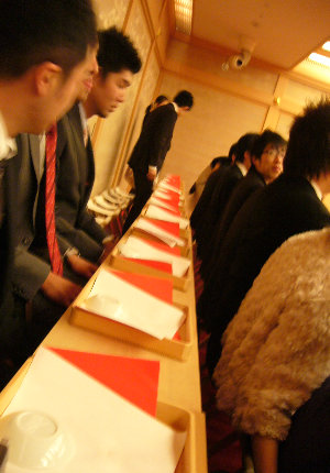 昔から僧侶のような男No.5。 ある日突然チームにボール3個とボールケースを寄付したり、 大会中みんなで昼飯食いに出たり、コンビニで買ったりする中、いつも手作りおにぎり持参 しとるし、携帯電話 は学生時代から使い続けとるN504iって機種。もちろんCamera機能なんてありません。 7年目だそうです・・・。 そんなNo.5も挙式前に人生初の美容院に行ったそうでお洒落ヘアーになっとった ![]() これまでは美容院じゃなくて、床屋でもなくて、自分でバリカンで刈っとった。 式は和装 ![]() 何回も結婚式出とるけど初の和装結婚式 ![]() みんな勝手が分からない ![]() こんな感じ ![]() 右の写真に写っとるような、先っぽに紙が付いた木の棒でバサッバサッてお祓いしたり、 神様に読経したり・・・ 三々九度ってのも初めて見た ![]() 列席者にもお酒がふるまわれる ![]() 左 : 和装挙式 ![]() 中 : 巫女さんにお酒を注いでもらう ![]() 右 : ふるまい用のお猪口 ![]() 二人とも袴と着物がよく似合っとった ![]() 左 : 鏡割りもあった ![]() 右 : クリスマスシーズンやったからケーキはツリー ![]() スイーツに群がるANTELOPESの若人 ![]() ケーキが似合わないのなんのって ![]() 本日のベストショット ![]() ちなみに今回は全員忘れ物なしでした ![]() No.6はイオンスーツじゃないスーツやったし、 No.12も Not コーデュロイでした。 ![]() これが何の話か分からん方はこっち参照 No.16結婚式 二次会には信州大学バスケ部OB大集合 ![]() 懐かしい顔がいっぱいおった ![]() ゲームでAir Bedゲット ![]() その後も学生時代の懐かしい話に花が咲き三次会 、四次会 と続き・・・結局朝帰りやった。。。 いやぁ~たらふく飲んだ ![]() まる&まいちゃん おめでと ![]() またちょくちょく お邪魔するけどよろしく ![]() 後日談。 新婚旅行はオーストラリアへ ![]() そこでもNo.5の僧侶っぷりが炸裂したらしい ![]() 向こうで夕飯 食って会計済ませて 店を出た二人。No.5 「あれ? おつり$41のはずなんに$51ある。」 まさか・・・ No.5 「返してくるわ。」 ってレストランに返金してきたらしい・・・ 参りました。 PR この記事にコメントする