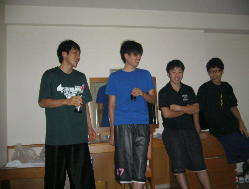 帰ってきても暑くて何もやる気が出んかった ![]() もう少しで1ヶ月未更新になるとこやった。。。 今日は 雨降って涼しいので8/21,22に行われた 大会について書きます ![]() 北信越5県で総当たりのリーグ戦 ![]() そして上位2県が千葉国体に進める ![]() 金曜日、仕事休んで富山入り ![]() ![]() 大会会場で 練習してホテル へ ![]() 夕飯はバイキング ![]() 刺身 とローストビーフがうまかった ![]() 新潟、石川、福井も同じホテル ![]() 大浴場 とかで他県の選手を見たけど・・・ガタイが違う ![]() みなさんすっげぇ 体 しとるわ。。。 ![]() そんなゴツく見えない人でも脱いだらすげぇ ![]() 中には種目違うんじゃねぇかって体つきの人も・・・。 ちょうどこの日が誕生日だったGUNSのAKO ![]() 内緒で ケーキ & ろうそく & クラッカー 購入。みんな集めてクラッカー配って、ろうそくに火を灯してAKOを部屋に呼ぶ ![]() みんなでハッピバスデーを合唱 してクラッカーでお祝い ![]() ろうそく消してもらって、そのまま宴会 ![]() とは言え次の日試合やから軽めに。 期待の若手衆。 初日は福井と富山に勝利 ![]() なんと福井にはANTELOPESのNo.15が選手でおった。 しかもスタメン ![]() 長野 vs 福井 では両チームのPGとしてNo.12とNo.15がマッチアップ ![]() すげぇ、すげぇ ![]() 初日2勝して、みんなのテンションも上がる ![]() 前日と同じメニューのバイキングを食って、やはり宴会 ![]() ![]() 前日よりも深酒したような気がする ![]() 日曜は新潟と石川 どっちも強い ![]() アップの様子 ![]() 新潟には力の差を見せ付けられて敗退 ![]() 石川戦は最大20点差を着けられるも最終Qで猛追 ![]() が、やはり地力の差は埋められず敗退 ![]() 2勝2敗で3位 ![]() 本国体出場ならず・・・。 詳細は www.tabba.org/competition/minikoku/h22/22minikoku.htmlここ数年では一番惜しかったと思う ![]() チームも若返ったし、近いうちに北信越勝ち抜けるようになるんじゃないかな。 PR この記事にコメントする