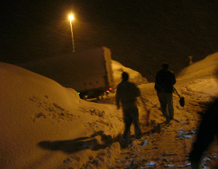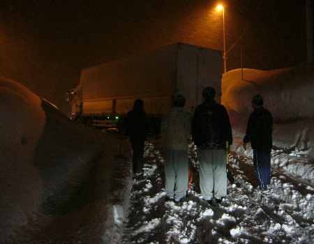 長野からやと4時間半ってトコか ![]() 先日の富山遠征では雪で予想以上に時間かかった ![]() 富山遠征の模様 ![]() 長距離移動しての試合やと体動かん ![]() とゆー事で、前日のうちに移動 ![]() 有給取れた組は昼のうちに移動。 取れない組は夜移動 ![]() 最終組は長野を12時過ぎ出発 ![]() またしても雪がやべぇ、完全に吹雪 で視界も悪い。時速50kmで高速走っとると・・・ 「中郷~上越高田間が事故のため通行止め」 の標識が ![]() 中郷で高速を下ろされる ![]() 路面状態は高速よりひどい ![]() ボコボコ道を走っとると・・・トラックが止まっとる ![]() ゆっくり近づくと・・・雪にはまってタイヤが空回りしとる ![]() 抜かしたいが・・・雪によって道幅が狭くパスできない ![]() 引き返そうかとも思ったが後続車が2台来とる ![]() ![]() 様子を見に行くと運ちゃんがチェーン巻いとった ![]() これで抜けれるかな・・・ と期待したが、ちょっと進んでまた空回り ![]() デカいトラックやから押しても無理やろうし。。。 タイヤ周辺だけでも雪掻きすれば抜けるかもやけど、スコップなんか持って来とらん。 ダメもとで後続車の人に聞くと、 「ありますよ」って ![]() しかも3本! No.14、No.18、T池田で雪掻きスタート ![]() 雪の降る中、試合前日(もう当日か・・・)の午前2時に上越で雪掻き ![]() ・ ・ ・ 脱出成功 ![]() いやぁ~よかった ![]() 一時はどーなるかと思った ![]() やっと前に進める ![]() ・ ・ ・ と思ったら、今度は後続車の1台がスタック ![]() スコップ3本貸してくれたおっちゃんを見捨てる訳にはいかん ![]() 再び雪掻きスタート ![]() 雪の降る中、試合当日の午前2時過ぎに2度目の雪掻き ![]() こっちは簡単に脱出成功 ![]() 今度こそ先に進める ![]() 今日ほど4駆でよかったと感じた事ねぇな。。。 結局、この日の目的地の金沢に着いたのはなんと5時 ![]() 普段の倍近く時間かかった ![]() 全国への道はなかなかに厳しい・・・ PR この記事にコメントする