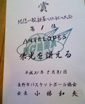 土曜は仕事にて欠席・・・ ![]() 日曜はメンバーも集まって10人 ![]() 上田市在住No.8 最近姿を見せない。。。伊那市在住No.9 結婚式準備で大忙し![]() 三重県在住No.11は欠席 理由不明。。。順調に勝ち上がり準決勝 ![]() その終盤、点差がついて勝利を確信した試合の終盤。 No.4がフリースローを獲得 ![]() 1投目を沈めて2投目。 審判からボールを受け取ってすぐに投げる ![]() ![]() わざとリングに当てる ![]() ![]() 自分でそのまま取ってシュート ![]() ![]() 3点プレイ達成 ![]() ![]() 会場&ベンチが盛り上がる ![]() がNo.4の描いたシナリオ ![]() しかし現実は・・・ 審判からボールを受け取ってすぐに投げる ![]() ![]() リングに当たらずネットをかすめてボードに当たる ![]() ![]() それでもヘコたれず自分で取って・・・ ![]() 審判 「ピー! バイオレーション」 ![]() ち~ん 会場&ベンチが凍りついた![]() 突然の出来事にメンバーもフォローできず・・・ この事件以来、No.4にはマヒャド使いって呼ばれるようになったとさ ![]() 決勝では吉田クラブを下し8連覇達成 ![]() 詳細は本家へ http://antelopes.masshi.com/result/taikai/2009/hokusinsinzen.php 祝勝会 はNo.6邸にてBBQ ![]() No.4、No.5、No.6、No.14はいつものように撃沈しとったそうな ![]() そうそうに酔っ払っちまったから画像無し・・・。 今週末から早くも県一般 が始まる ![]() 組み合わせ nagano.jabba-net.com/html/bulletin/H21_kenippanentry.htmリベンジできるかなぁ~ 気付けば30000アクセス突破 ![]() ![]() ![]() まだまだいきます ![]() どーぞよろしくお願いします ![]() PR この記事にコメントする