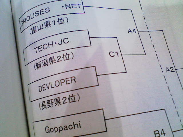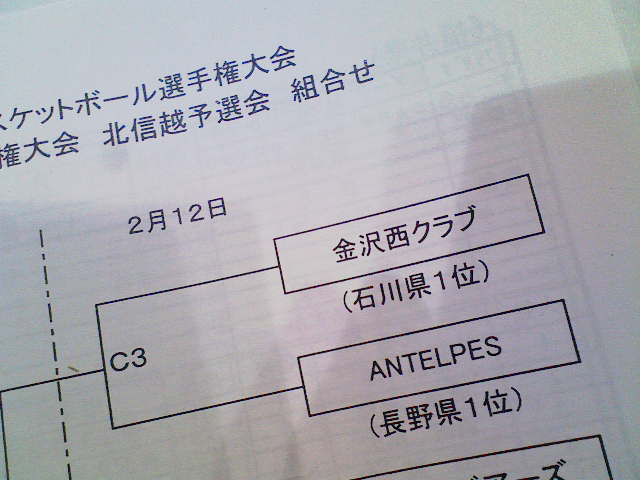 ANTELOPES 4回目の挑戦 ![]() 今年は長野ホワイトリングで開催 ![]() 前日は軽い練習で汗を流して本番に備える ![]() 県外組も前日のうちに長野入り ![]() ![]() が、雪による高速渋滞でNo.16は練習に間に合わず ![]() No.11に至っては深夜1時に到着 ![]() ご苦労さん。 大会当日 ![]() 体育館に着いて、パンフレット を見て愕然とする ![]() チーム名が間違っとる ![]() DEVELOPER ANTELOPES 地元長野の男子2チームとも間違うって・・・ ![]() ちなみにDEVELOPER は県大会を合わせると、これで三回目 ![]() 2回目 過去の記事へ1回目 過去の記事へ同じ長野代表のDEVELOPERの試合を観戦&応援 ![]() 途中リードを奪うも敗退。 残念 ![]() このレベルになるとどの試合も面白い ![]() いよいよANTELOPESの試合 ![]() 初戦の相手は石川県No.1 。 金沢西クラブ 5割入れば上出来(たまにラインクロスも犯す)のNo.12のフリースロー。 この試合は7/10っていう奇跡的な数値を叩き出す。もちろんキャリアハイ。 そのお陰もあって何とか勝利 ![]() 準決勝は新潟県No.1。 Hedge Hog 粘りを見せ、一時は逆転までするも・・・敗退 ![]() No.14退場。 ち~ん ![]() 全国への最後の1枚の椅子をかけた3位決定戦 ![]() 相手は福井県No.1。 Dark Red Crabs これまた接戦。 タイムアウト中にコブラツイストみたいな技をキメられるNo.17 一進一退の攻防が続くが、チーム一丸となり勝利をもぎ取る ![]() 全クラ(全国クラブ選手権)出場決定 大会結果 ![]() いやぁ~よかった ![]() 試合後、うれしくて泣いとる奴も何人かおったな ![]() みんなに胴上げされるCap ![]() とその横で、 父ちゃんがいきなりみんなに乱暴に放り投げられるのを見てビビって泣いた息子の想史 ![]() 全国クラブ選手権の組み合わせが出た 組み合わせ ![]() 初戦の相手は東北2位のYAMAGATA KUBERA(山形クーベラ)ってトコ。 まぁドコとやっても強ぇ事は間違いない ![]() とその前に今週末はANTELOPES納会 ![]() 泥酔してきます ![]() PR この記事にコメントする