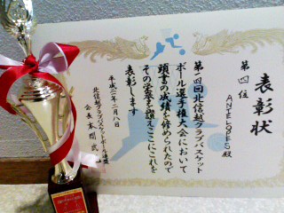 準決勝 対戦相手は前年度全国クラブ選手権でbest 4に入った強豪 ![]() 新潟 Hedge Hog (ヘッジ ホッグ) 去年のこの大会で敗れた相手 ![]() 開始早々からファールが混むANTELOPES ![]() 1Qで32点取られ、いきなり18点のビハインド。 2Qで少し追い上げて11点差で後半へ ![]() どちらもペースをつかめないまま試合は進み・・・ ・ ・ ・ 敗退 ![]() 今年も負けた ![]() 3位決定戦の相手は金沢工業大学のOBチーム、工大クラブ ![]() この試合もリードを許し追いかける試合展開 ![]() 7点差まで詰め寄るも、そこからもう一本が奪えない ![]() ・ ・ ・ 敗退。 結果は4位。 全国ならず ![]() 北信越の壁は厚い ![]() 詳細は本家へ antelopes.masshi.com/今大会で、 福井1位のDark Red Crabs drc.horemitakotoka.com/新潟1位のHedge Hog www5.plala.or.jp/hedgehoghp/石川1位の工大クラブ www.geocities.jp/koudaiclub/と対戦。 12月の北信越総合で、 富山1位のGrouses.Net と対戦。 北信越全県のクラブチーム1位と対戦したことになる訳か ![]() やっぱどこも強ぇ ![]() それらに勝って全国へ行くってのは大変なこった。。。 ![]() 全国への道は閉ざされたが一応、北信越4位 ![]() トロフィー 、賞状 、ボール がもらえた![]() あれから早2週間が過ぎようとしとる・・・ちょっとした燃え尽き症候群に陥り中 ![]() 曲がったまんまのNo.14の右手薬指 ![]() 思いっきりパー にしても相変わらず薬指カリツォー ![]() 曲げると痛い ![]() 医者に診てもらうと・・・ 槌指(つちゆび)ってやつらしい ![]() www.tanakageka.com/lecture/malletfinger/indexhtml.html レントゲンの結果、骨には異常なかったから、第一関節を起こす筋が切れちまったらしい ![]() そこの先生が言うには・・・ 「曲がらないのは物を掴めないから不便やけど、延びないってのはたいした支障ない。」 「元巨人軍の中畑清もどっかの指が同じ槌指で曲がっとる。」 らしい。 言われてみればそうかもしれん。。。 ![]() 左利きやから、「右手は添えるだけ」。 問題ないか ![]() とりあえず伸ばした状態で固定して自然治癒すればラッキー ![]() しばらく様子見てみるか ![]() みなさん差し入れ&応援ありがとうございました m(_ _)m PR この記事にコメントする