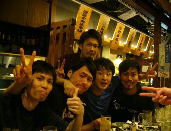 メンバー集まるのが4月の大会以来 ![]() 憶えとる限り、これほどチーム練習やらんと大会に臨んだのは初めて ![]() 個人的にも今大会がようやくシーズンイン。 4月の大会は 「30 で 1.5 と 1。 そして 5」 やったし ![]() 30 で 1.5 と 1。 そして 5 ![]() チーム練習やっとらんけど、やる事は同じ ![]() 頭では分かっとるから、それをみんなでチームDefは機能する ![]() 得点は延びんけど、失点を抑えて勝ち上がる ![]() ・ ・ ・ 二日目の昼飯後、次の試合まで時間があったから中野のジャスコでブラブラ ![]() あまりに暇をもてあまし、メガネ屋でサングラスを試着する2人 ![]() やっぱ外人顔のNo.11はなかなか似合う ![]() ・ ・ ・ 試着にも飽きて、2人がメガネ屋から出た その時 ![]() 待っていたかのように店員さんが飛んできた ![]() まだ2人とも、数メートルしか離れとらんけど、お構いなしにメガネの清掃開始 ![]() 見せしめのように拭きまくっとった ![]() それを見てちょっと凹むNo.11と、ちょっと怒るS池田 ![]() ・・・どんまい。。。 あの店員さん、デキルな・・・ ![]() その鬱憤を晴らすかのように次の試合では1Qで23点(3P5本)と爆発するS池田 ![]() 準決勝、決勝はリードを許す展開で焦ったけど、 地味にDefから巻き返しての逆転勝利 ![]() 詳細は本家へ http://antelopes.masshi.com/決勝は久々に足つった ![]() 第3Q途中からピキピキと危険な感じが・・・。 少し休んでイケる! って思ったけど瞬殺 交代 。。。ダサい。。。両内ももと両ふくらはぎ、さらにはスネまでも ![]() どこをどう伸ばしても、どうにもならんかった。。。 祝勝会 は珍しく長野駅前での開催 ![]() 一旦帰って、チャリで駅前へ ![]() ボロボロの下半身で駅前まで辿りつけるか。。。 予想通り、途中2回ほどほどつりそうになる ![]() 「うまいビールが待っとる!」 と自らを奮い立たせてチャリをこぐ ~気合で駅前到着 ![]() 3000円ぽっきりで飲み放題&食べ放題 ![]() ![]() やっぱ4月の大会とは の味が全然違う ![]() やっぱ大会はこうじゃないと ![]() けど、その分、酔うのも早い ![]() お疲れ様でした。 PR この記事にコメントする
