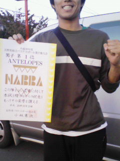 No.4が左手首負傷&突き指&ふくらはぎ肉離れ気味ってのを理由に今日は出ない宣言。 自己管理がなっとらん ![]() 2回戦の相手はGALES ![]() この試合は開始から大会のために三重から駆けつけたNo.11のワンマンショー ![]() 常に速攻の先頭を走り得点を取りまくる ![]() 前半で勝負を決める ![]() チームはノリノリだったが、一人その波に乗り切れず唯一無得点のNo.8 ![]() ちょっとスネそうだったのでNo.8を中心としたOffを繰り広げる ![]() それをいいことにシュート乱発 ![]() 90点から100点までの10点を一人で決めた ![]() 試合後のNo.8のコメント 「いやぁ~。やっぱバスケって楽しいッスね」・・・メンドクセー ![]() 3回戦は前の週に一緒に飲んだDEVELOPER ![]() 出だし両チームともOffが重くペースが掴めない ![]() 2Qに入るとANTELOPESペースになり、一気に差を広げる ![]() 4QはANTELOPESが誇るツインタワーNo.7(196cm)、No.10(197cm)を同時に投入 ![]() この二人のおかげでANTELOPESのチーム平均身長は182cm。 チーム3番目はNo.16の184cm・・・。 ちなみにこの二人抜きでのチーム平均身長179cm。 長野バスケ界、最高身長と第2位が同じユニフォームを着てコートに立つ ![]() いやぁ~贅沢だ。。。 が、プレー噛み合わず ![]() 惜しいハイ・ロープレーは何回かあってんけどなぁ~。 次に期待 ![]() 最終日。 試合前にいつも通りミーティング。 No.4 「またトロフィー忘れた。(2回目)」 ![]() ![]() ![]() ![]() ![]() こりゃ確信犯やな・・・。 またしても負けられない戦いが始まる ![]() 準決勝はすずらんクラブ ![]() 序盤は守りあい・・・とゆーかお互いシュートが入らない。 2Qに入ると相手の強力インサイドにOffリバウンドをもぎ取られリードを許す ![]() ここで前日全く出ていないNo.4を満を持して投入 ![]() しかし、キレ無くち~ん ![]() 3Q、No.11の余計なテクニカルファールもあったが、速い展開で追い上げて逆転 ![]() 4Qはリードを守りきって何とか勝利 ![]() 決勝は信州大学 ![]() 試合前のアップでNo.10、太ももをつる ![]() No.14のスーパーアイテム「ホットゲル 通称ホカホカクリーム」を使う。 No.10はホカホカクリーム初体験 ![]() 慣れんもんで想定外の部位にまで付着してしまったからさぁ大変 ![]() それはそれはもうすげぇホッカホカになっちまう。 試合開始 ![]() ジャンプボールなんにNo.10はもぞもぞしとるし・・・ それを見たすずらんクラブはコートサイドで大爆笑 ![]() ![]() ・・・No.10、ドンマイ ![]() 試合は序盤から信大の勢いあるプレーにリードを許す。 12点ビハインドで前半終了 ![]() 3Q、No.6の3Pを中心に怒涛の追い上げを見せる。 1点リードで最終Qへ ![]() 4Qでジリジリリードを広げて何とか勝利。 連覇を果たす ![]() ![]() ![]() 詳細は本家へ ![]() antelopes.masshi.com/result/taikai/2008/kensougou.php 前述の通りトロフィー忘れたため今回は賞状のみ ![]() いやぁ~毎回毎回思うけど・・・今回もよく勝った。 11月8、9日と福井で開催される北信越総合にコマを進めた。 そこで優勝すれば念願のALL JAPAN ![]() 初戦の相手は昨年のこの大会で8点差で敗れた富山GROUSES.NET ![]() GOURSES.NETの超絶シューターの方。 富山県総合選手権にて1試合で3Pを27本決めたそうな・・・。 27本って・・・ No.6とNo.11にDef頑張れやぁ~ ![]() 皆さん、お疲れちゃんでした。 余談・・・ 信大男女ともインカレ出場を決めた ![]() 男子は10年ぶりの出場になるんかな。 頑張れぇ~ ![]() PR この記事にコメントする