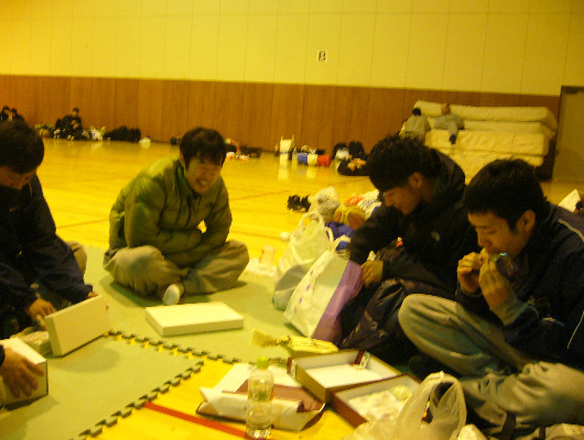 予想通り、体中痛ぇ ![]() 2日目は長野からDEVELOPERも参加 ![]() DEVELOPERの指令塔 SHIGE(34)。 って事は金沢日帰りか・・・前日入りすればいいがに・・・。 この日は4本 ![]() ・金沢大学 ・Steal(石川県) ・D.R.C.(福井県) ・工大クラブ(石川県) この日はNo.15が合流 ![]() キレキレのプレーでチームを牽引 ![]() 当然のようにTKGも参加 ![]() しかし自分のチームの試合があるらしく午前中だけ ![]() なので午後はまたしても6人。。。 左:初日に接触により顔面を腫らしながらも夜は 飲んだNo.8のディナイ ![]() 右:ウコン効果か、筋肉痛知らずのS池田 2本の同点クラッチ3Pを沈めた ![]() 休憩時間中に各チームからもらったお土産を配分 ![]() 1人分の分け前 ![]() いい感じの北陸のお菓子詰め合わせになった ![]() さっそくガッつくNo.11 ![]() 左:必殺、No.11の両手ブロック(ヤクルトジャンプ縦) 右:も1つNo.11の両手ブロック(ヤクルトジャンプ横) 4本終了 ![]() ちゃっちゃと着替えて、 これまた去年と同じコース、 第七ギョーザの店へ ![]() そしてやっぱりここにもTKG参加。。。 そして黄色いアンテTシャツ ![]() どんだけ・・・ ![]() 飲みたいのをグッとガマンしてギョーザをほおばる。うめぇ。 お土産ギョーザも買って帰路につく ![]() ![]() いやぁ~、しんどい遠征やった ![]() けど充実した週末やった ![]() やっぱ遠征やな ![]() PR この記事にコメントする